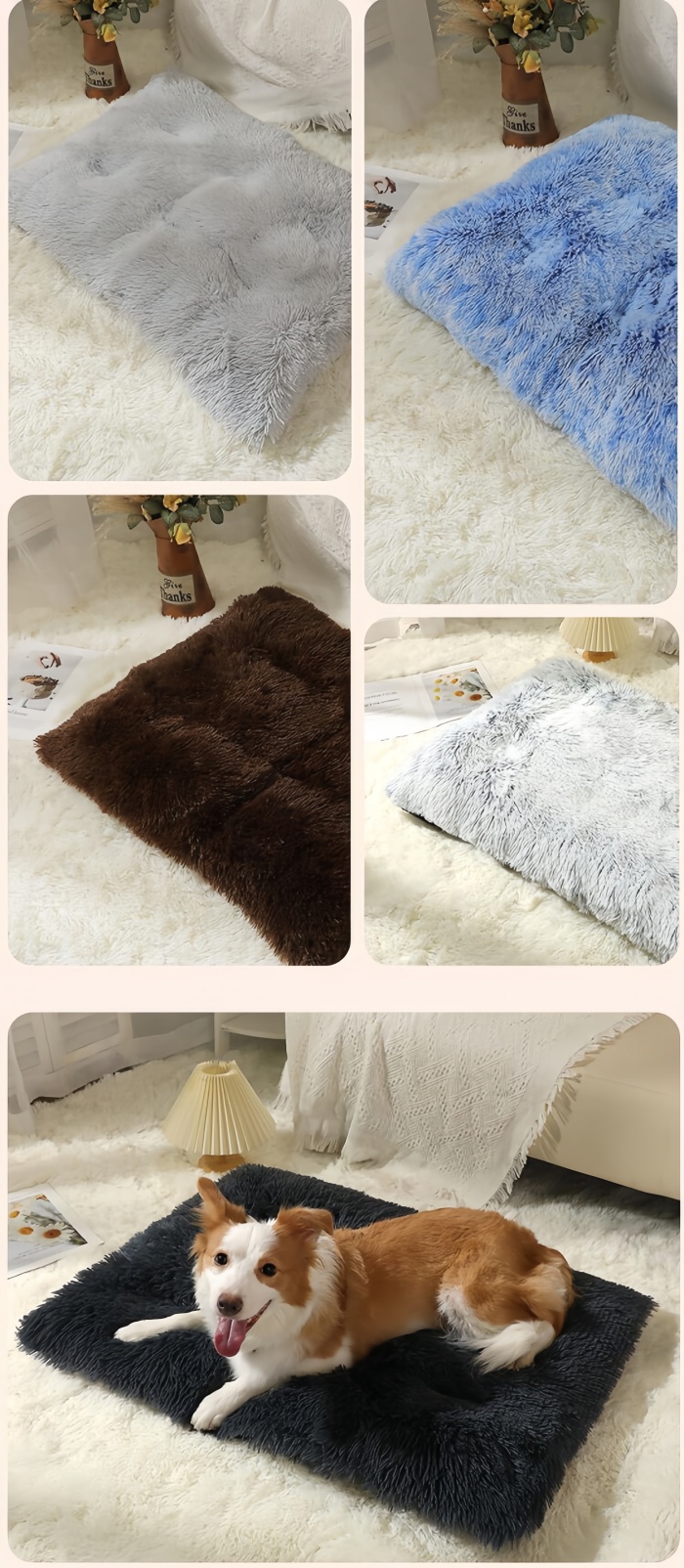 [High-Quality Materials]Made from faux fur and plush+pp cotton, this dog mat provides ultimate comfort and durability for your pet's relaxation.