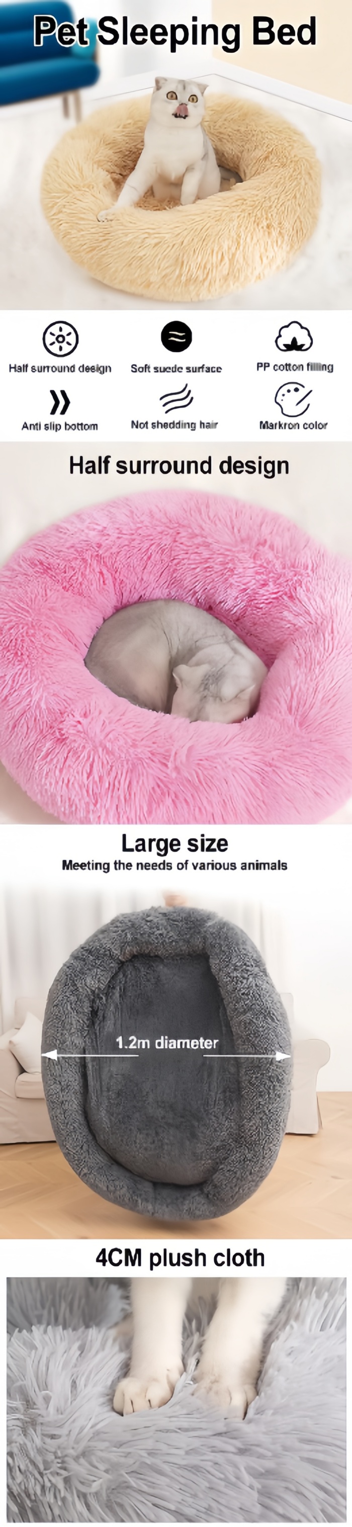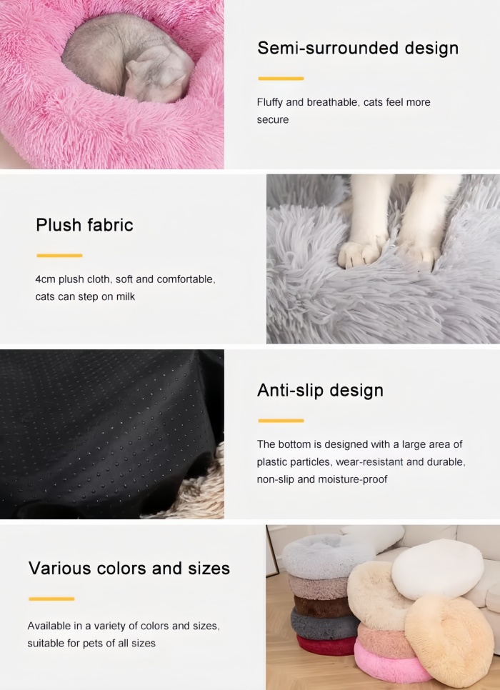 Soft Fabric Dog Bed Comfortable Round Donut Pet Beds Cushion