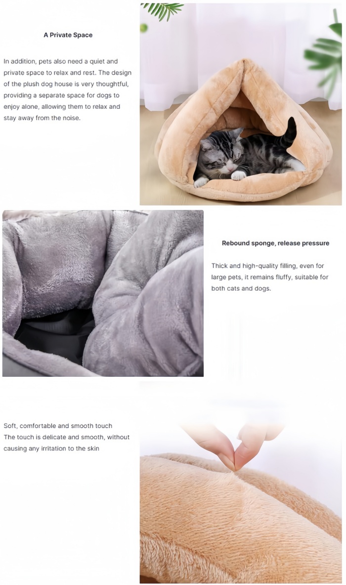 This Triangular shape cotton pet bed house features: